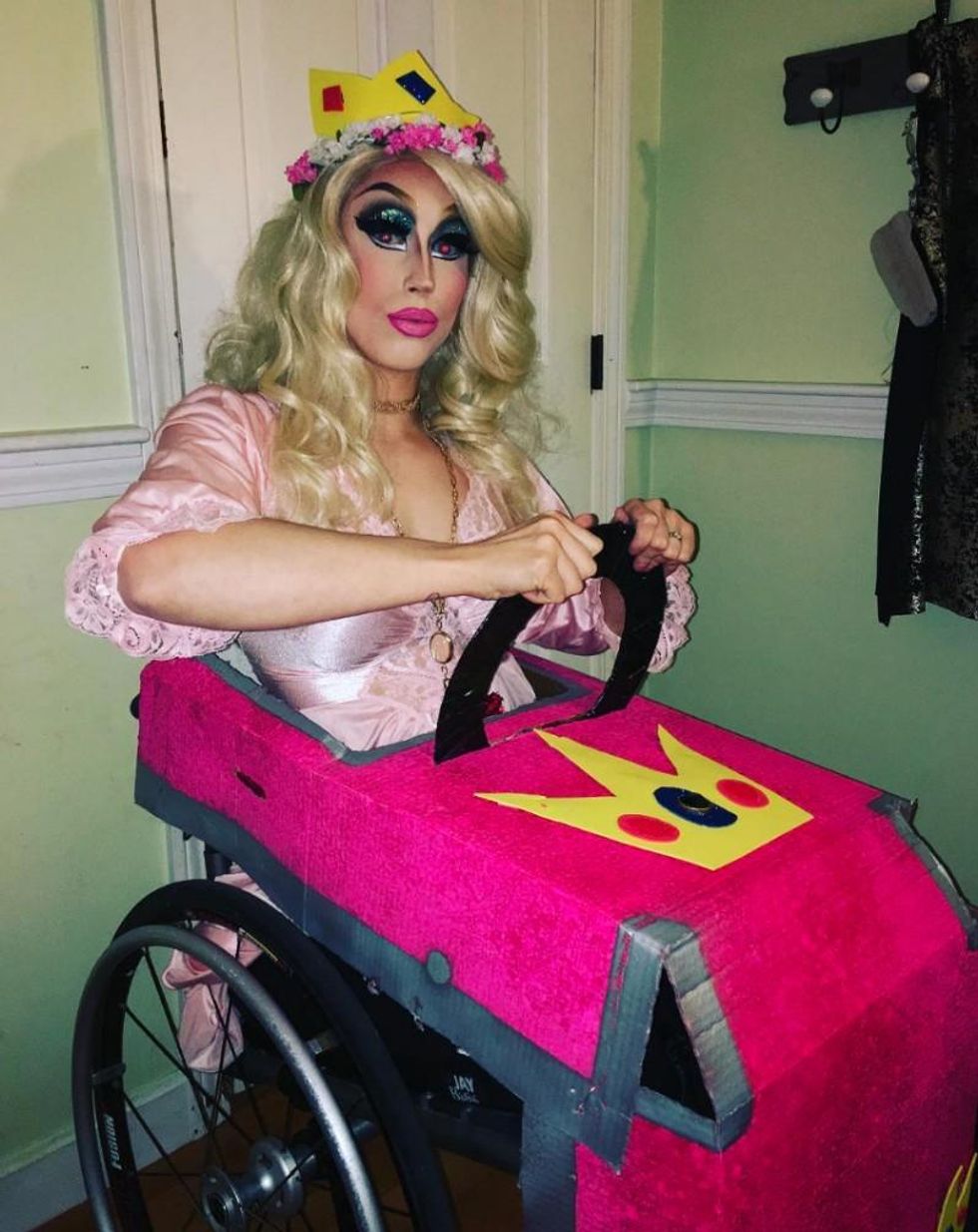 Sarah is a paraplegic lady queen who’s a matriarch in both the Boston and Providence drag scenes. In her profile on OUT, Sarah discusses what it’s like being a cisgender woman who is also paraplegic. She also talks about how she gets catfished by men with disability fetishes, what it’s like being patronized in the club, and how drag has transformed her life since her accident.
