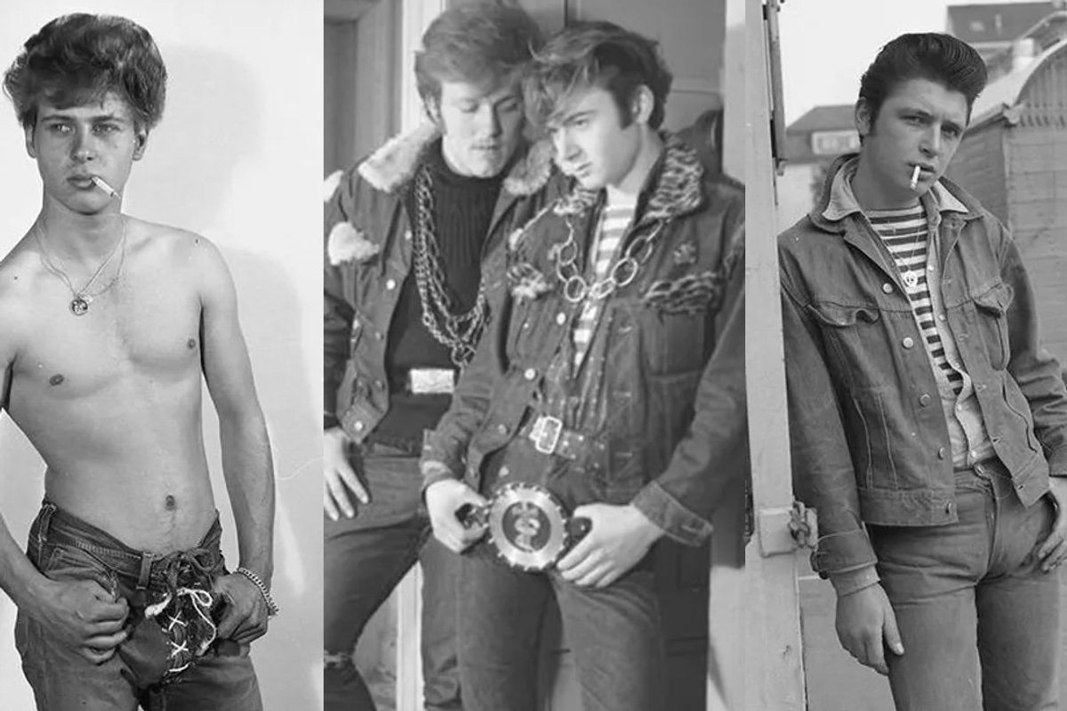 In 1958, Weinberger met a young man with whom he was immediately fascinated. The young man's look was distinctive -- slicked back hair, denim jeans and jacket, cowboy boots -- and, through him, Weinberger was introduced to a loosely organized band of working-class teens who rebelled against any type of Swiss, post-war, bland, middle-class conformity. Regular society derogatorily referred to these ragtag bands of "rebels" as the "halbstraken" (the 'half-strong'-- a reference to their immaturity). The young men formed gangs and adopted the demeanor of 1950s Hollywood depictions of rebelliousness: Marlon Brando's leather-jacketed ne'er-do-well in The Wild One, Elvis Presley's pompadour, James Dean's smoldering, tentative sexuality in Rebel Without A Cause. However, these "Halbstarken" modified the styling of their movie idols and created wholly new looks. They ratted and slicked back their hair, wore exaggerated belt buckles and chain necklaces emblazoned with images of their idols taken from fan magazines, and most remarkably, adorned their denim. Weinberger shot these rebels both in his home and at carnivals and festivals around Zurich. This body of work remains the best known of his extensive 50-year creative output.