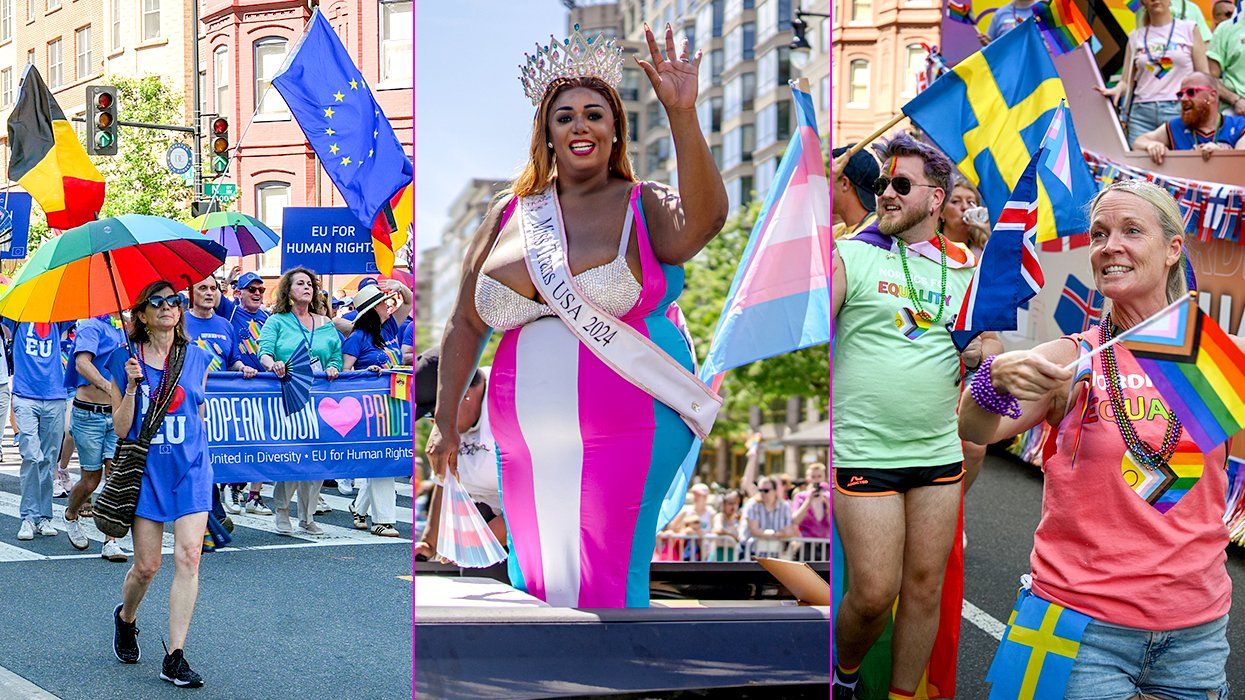 The DC WorldPride parade took over the nation’s capital on June 7, with 500 members of the Gay Men’s Chorus carrying a giant rainbow flag the size of three football fields, lesbian pop star Reneé Rapp riding in the parade on the back of a pickup truck, and trans Orange is the New Black actress Laverne Cox waving from a convertible. There were DJs, brass bands, elaborate floats, and members of the Sisters of Perpetual Indulgence blowing kiss are attendees, AP News reports.
