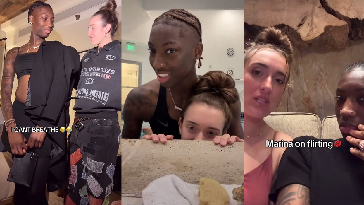 On another wild TikTok live, the BFFs were in Mabrey’s hotel room when a suspicious vibrating sound started coming from the bed behind them. Mabrey gets up to turn something off when Rivers responds to a comment from the audience by saying, “No, somebody did not say that was her toy” before the two teammates start cracking up. Fans will likely label this interaction "Exhibit B" when trying to prove that they are dating.