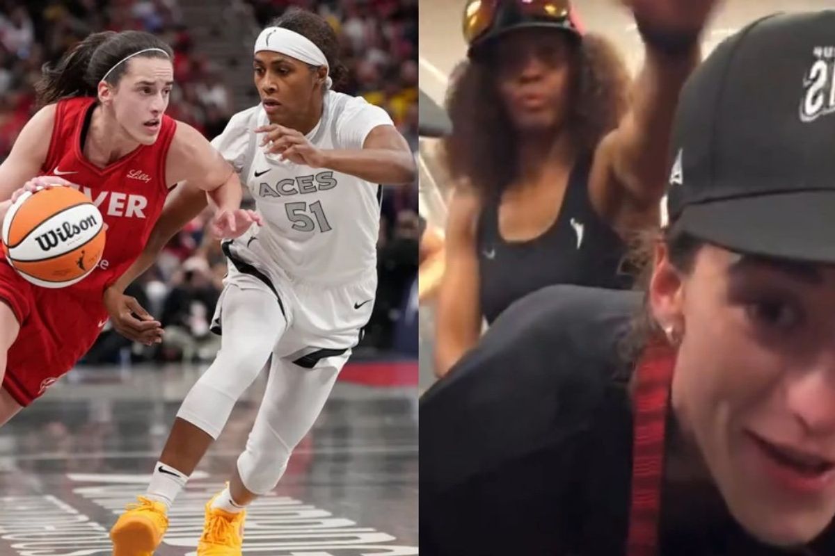 Celebrating a WNBA championship win took a hilarious and cheekily sapphic turn when Caitlin Clark was surprised by Sydney Colson’s antics.
